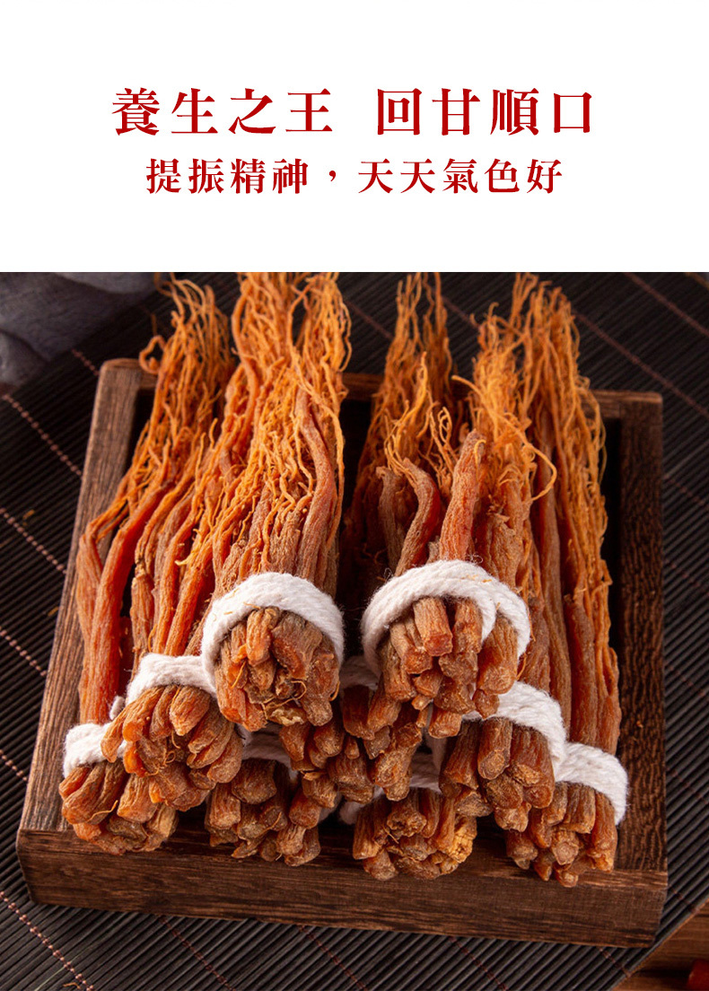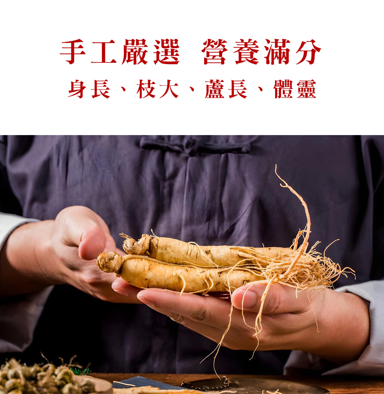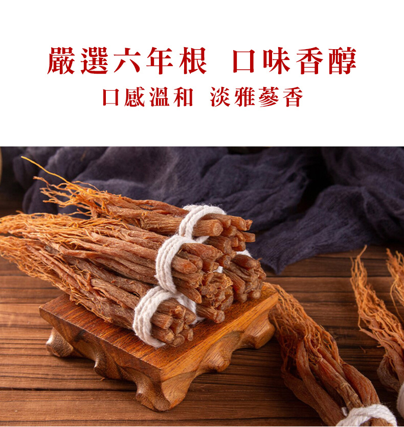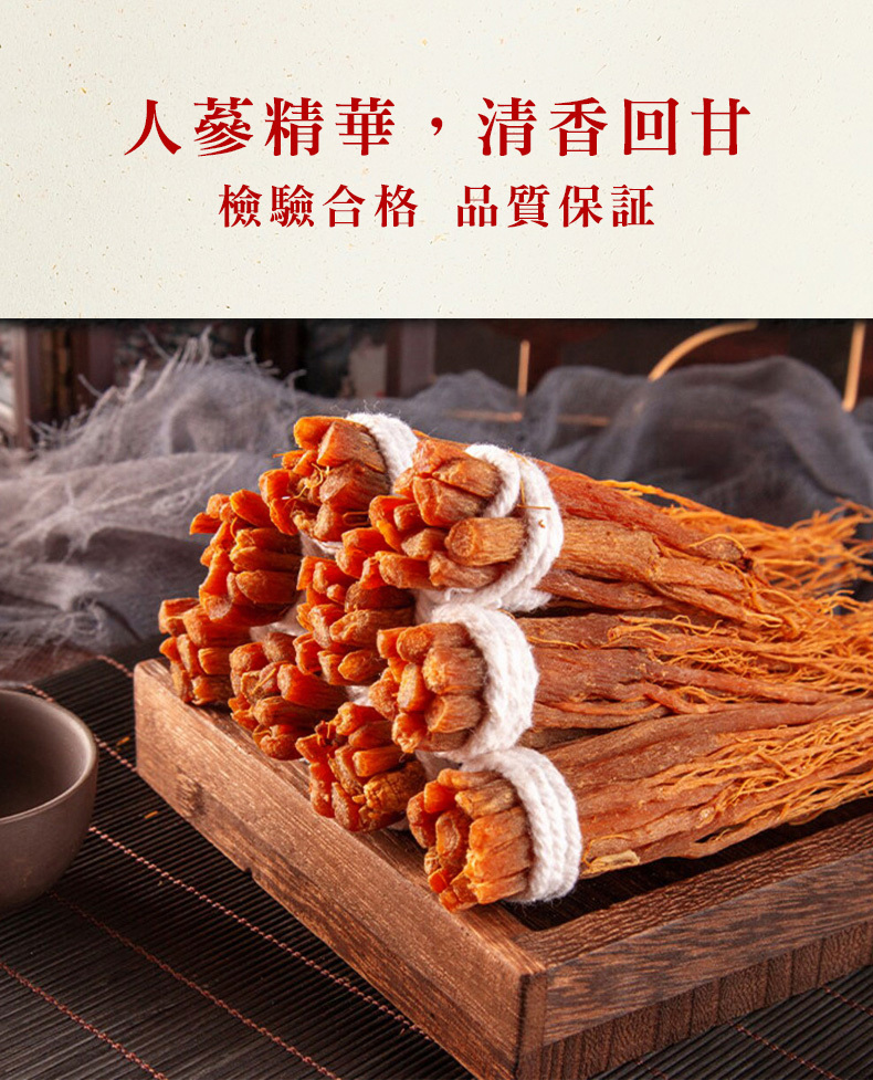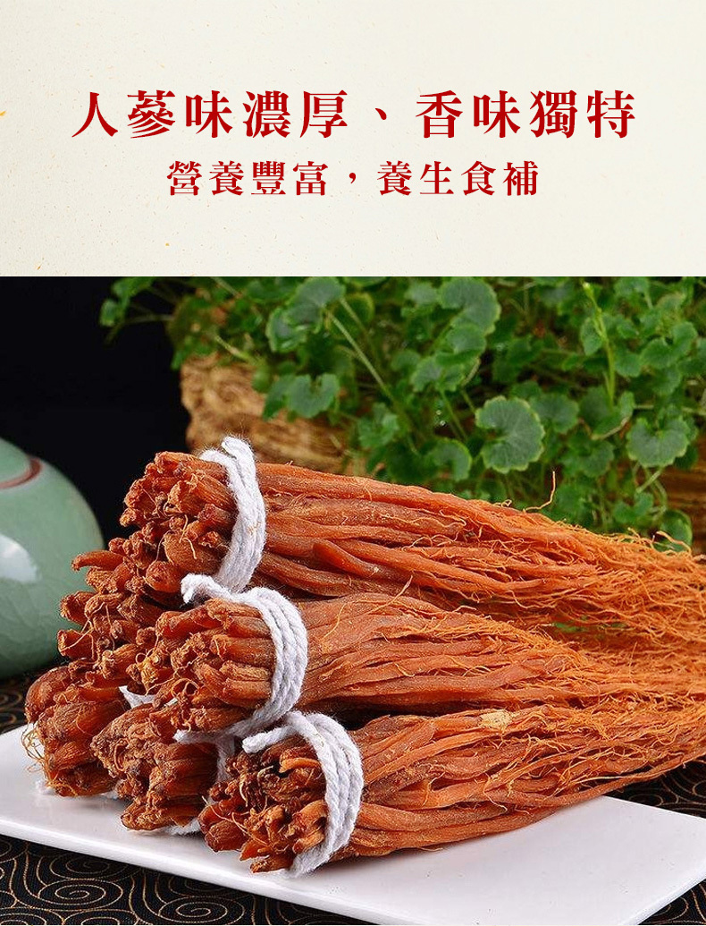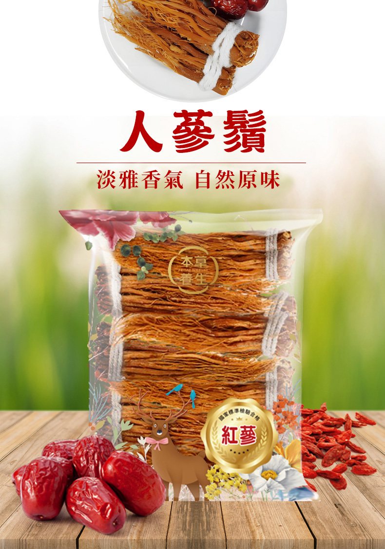 人蔘在本草綱目中列為上品藥材,在古時人蔘稀奇珍貴,故價格高昂而居高不下,人蔘鬚為人蔘下半,與人蔘有相似功效,卻便宜許多,適合一般人所使用,不論泡飲或煲湯皆有良好功效在其中。